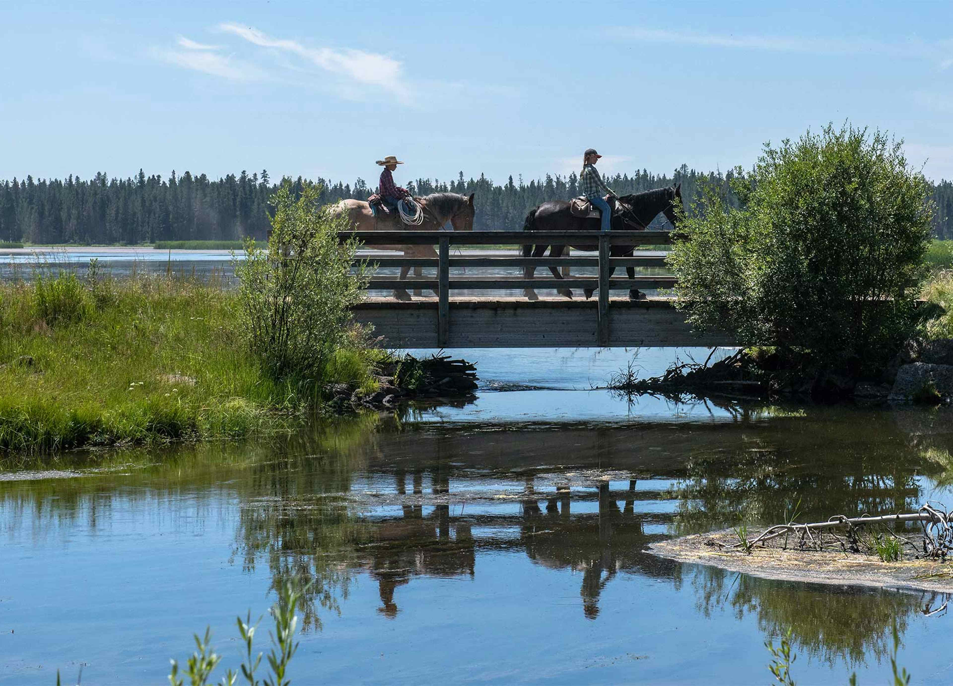 Did you trailer your own horses? From the Harriman State Park Visitors’ Center, head to Sage Flat Parking. From here, you can ride to the John Muir Trail, which leads to a network of trails that meander throughout the park. Most trails are level and great for wildlife watching. Because the trails are multi-use, be mindful of bikers and hikers if you decide to move faster than a trot. Trail maps and markers are placed regularly throughout the trail system so you won’t lose your way.